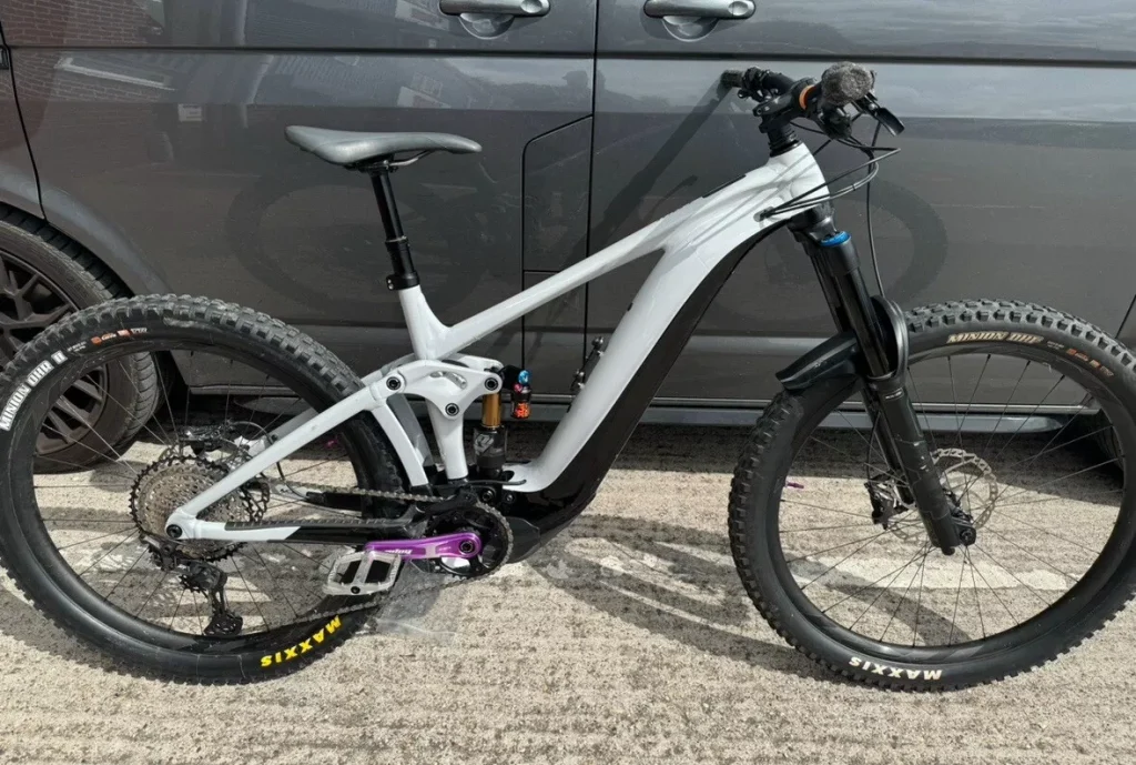 The Giant Reign E 1 is an electric mountain bike designed for aggressive trail riding and enduro racing. It features a full suspension frame with 160mm of travel in the front and 150mm in the rear, along with a powerful Yamaha SyncDrive Pro motor that provides smooth and responsive pedal assistance.