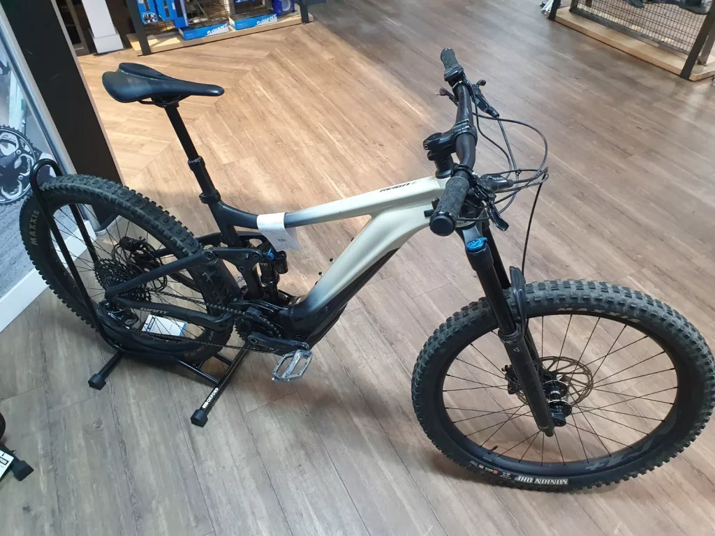 The Giant Reign E 2 Pro is an electric mountain bike designed for aggressive trail riding and enduro racing. It features a full suspension frame with 160mm of travel in the front and 150mm in the rear, powered by a 500Wh integrated battery and a SyncDrive Pro motor with 85Nm of torque.